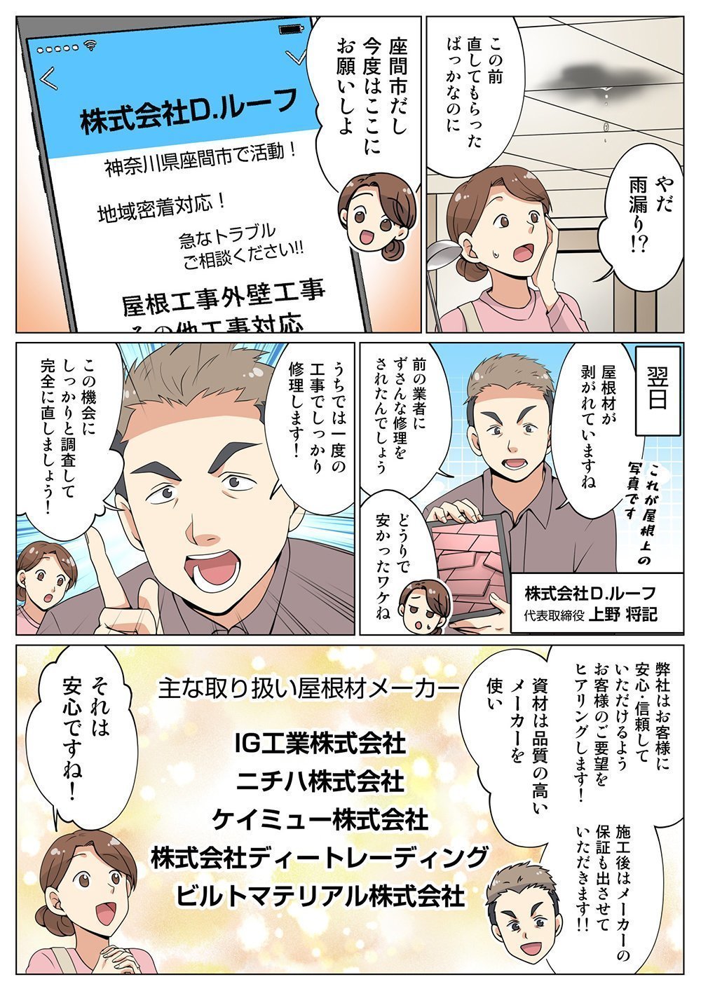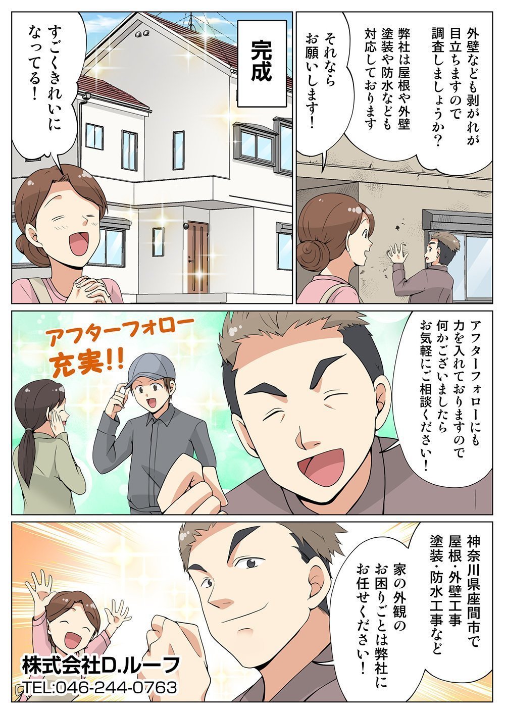 お住まいのことでお悩みの際は、D.ルーフまでお気軽にご相談ください。弊社は屋根工事・外壁工事・塗装工事・防水工事など、様々な施工に対応しております。
